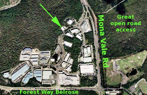 Attractive and impressive, for a corporate office warehouse location. Tree lined street access. Quiet, sunny, bushland outlook with only 3 neighbors. Modern building with high clearance opening glass front to the bushland. Easy truck turning, and unloading. Well maintained surrounding gardens.