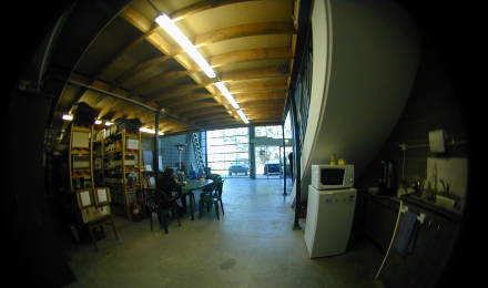 Ground floor. Grey painted concrete floor, Besser block walls, adequate lighting, 415 V 3 phase power, two toilets with shower, small kitchen.